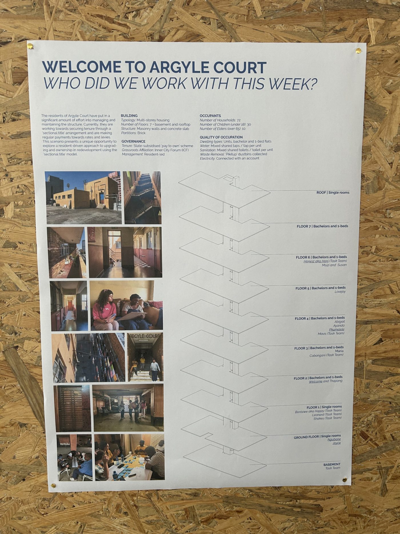 The workshop concluded with a public exhibition, showcasing the team's findings from their research and engagement ("Acts of Care: stories of collective maintenance and repair in inner-city Joburg”).
