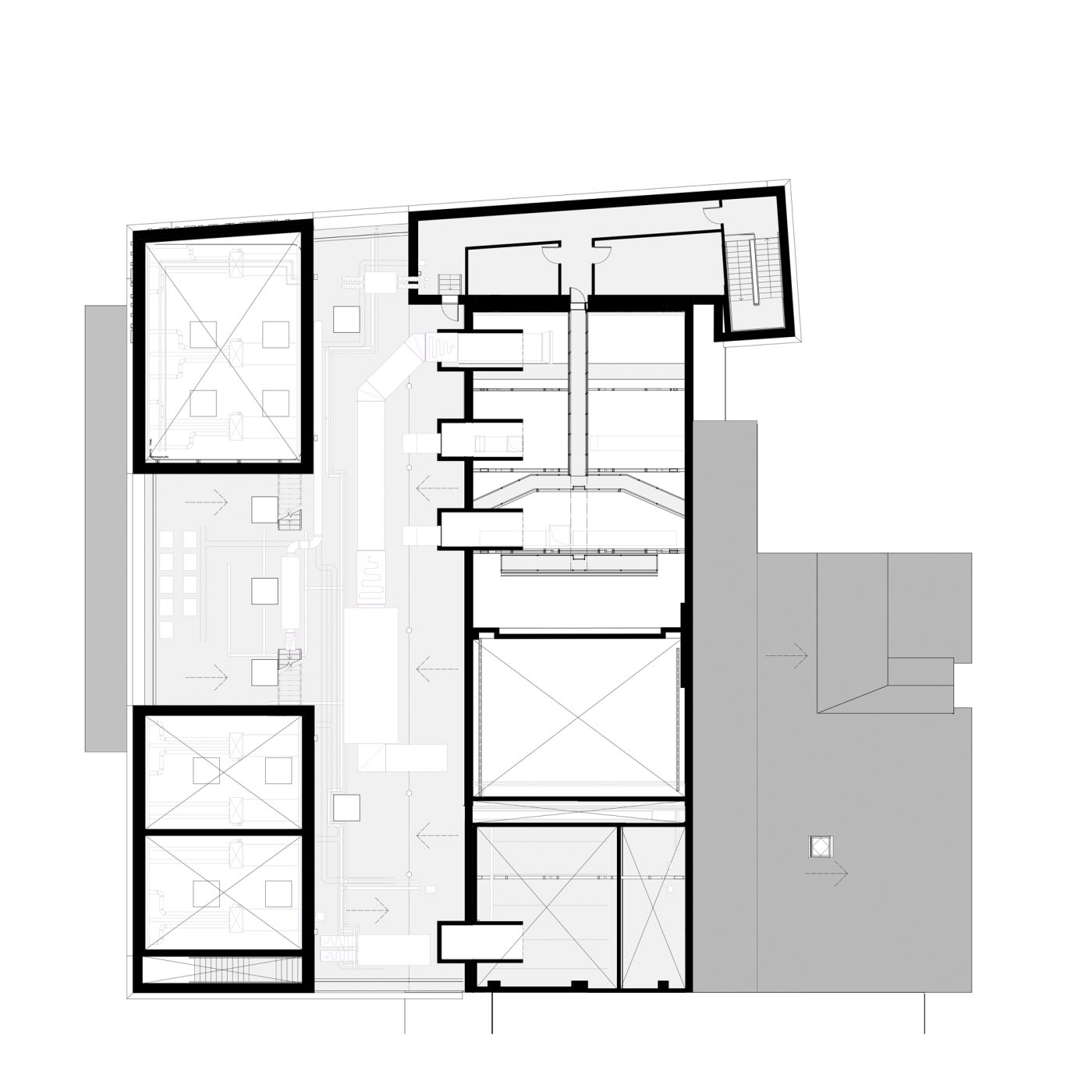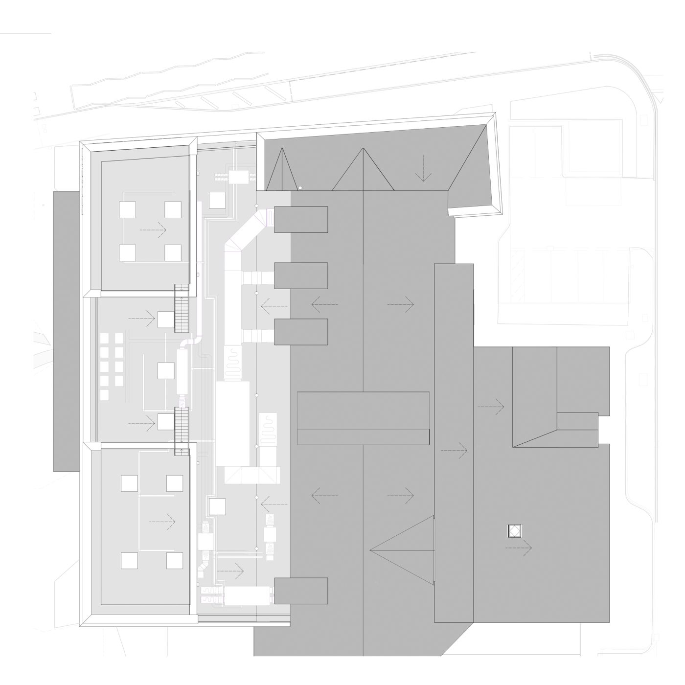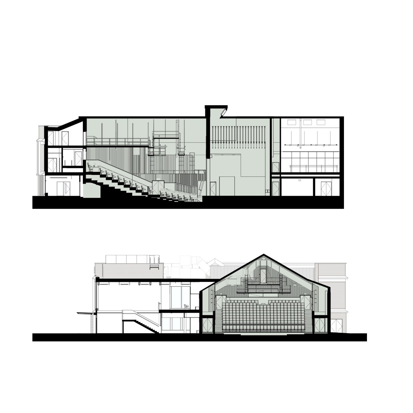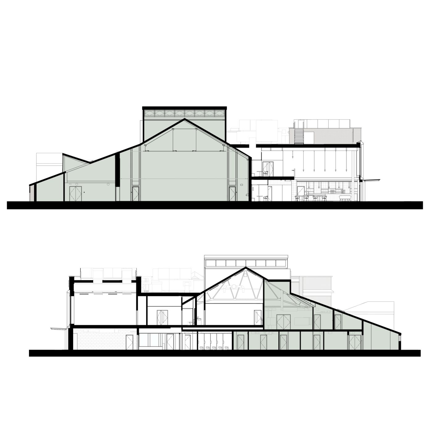 The project has been designed with a highly insulated envelope, including the renewed auditorium roof, to greatly enhance the energy efficiency of the building. The foyer and studio spaces are naturally ventilated using attenuated wind catchers on the roof and automated opening windows within the foyer. In the studios high level windows can be opened with local controls to provide purge ventilation.