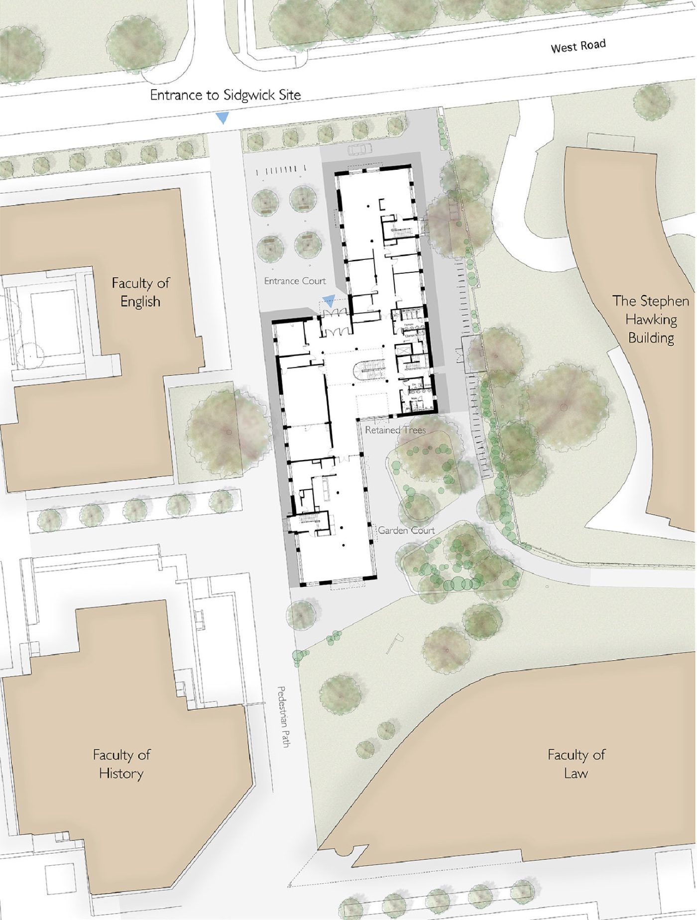 The building is located alongside Foster’s Law Faculty and Stirling’s History Library on the Sidgwick site – the University’s main campus for the Arts and a City conservation area.