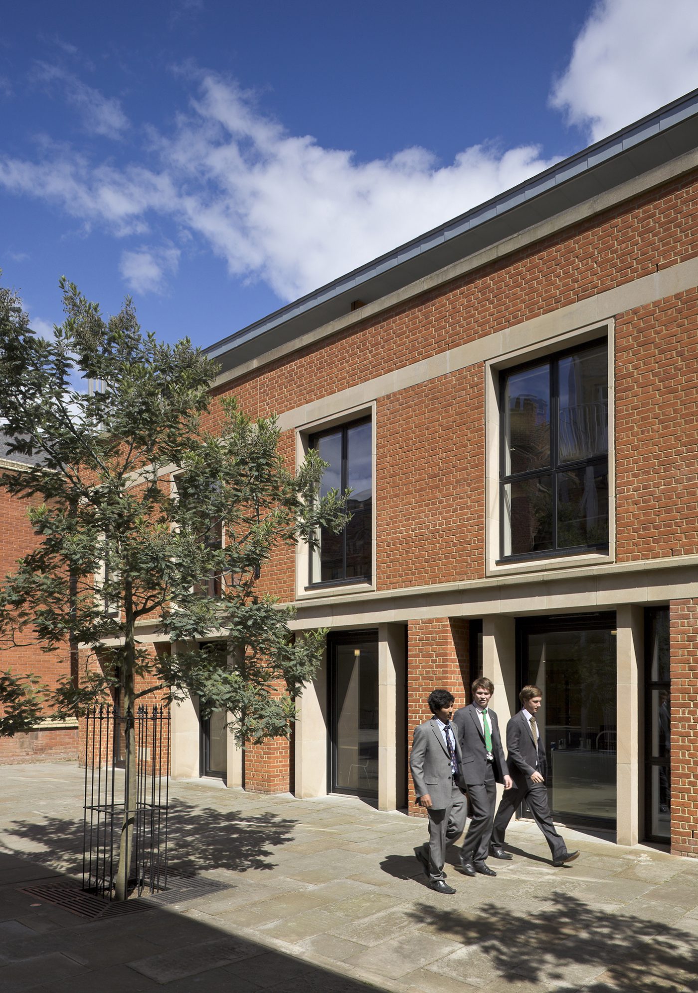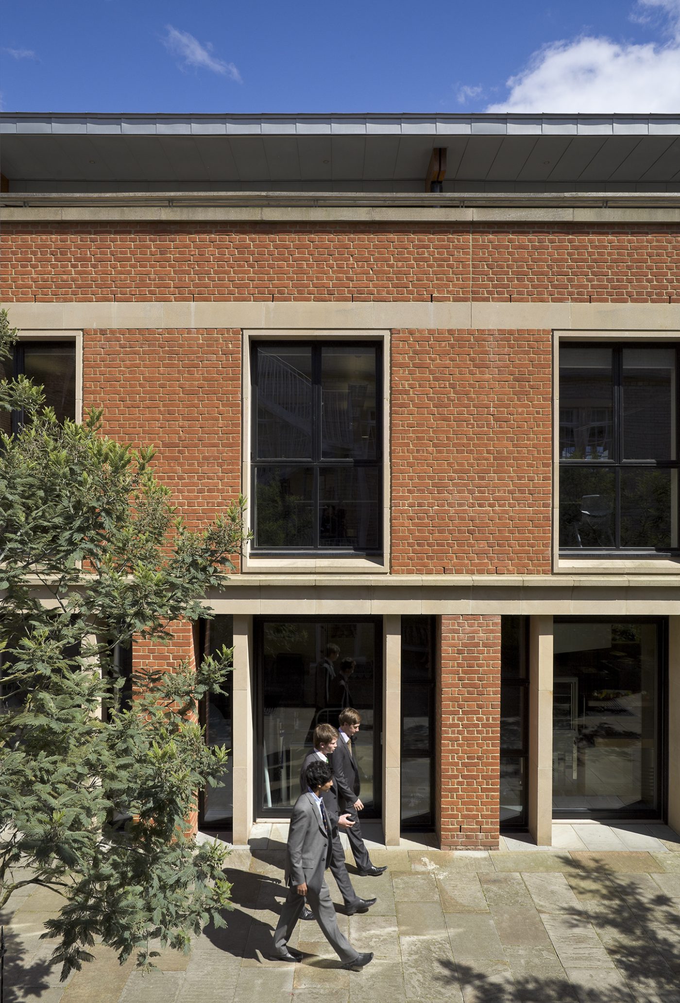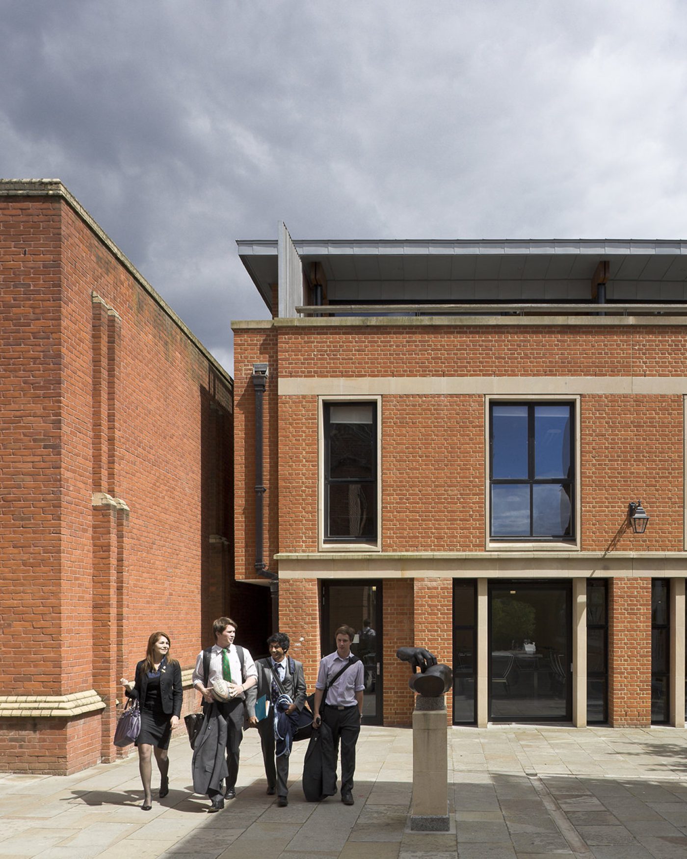 The first phase of development extended the existing language of courtyards and provides kitchen and dining facilities, as well as classrooms and a sixth-form centre.