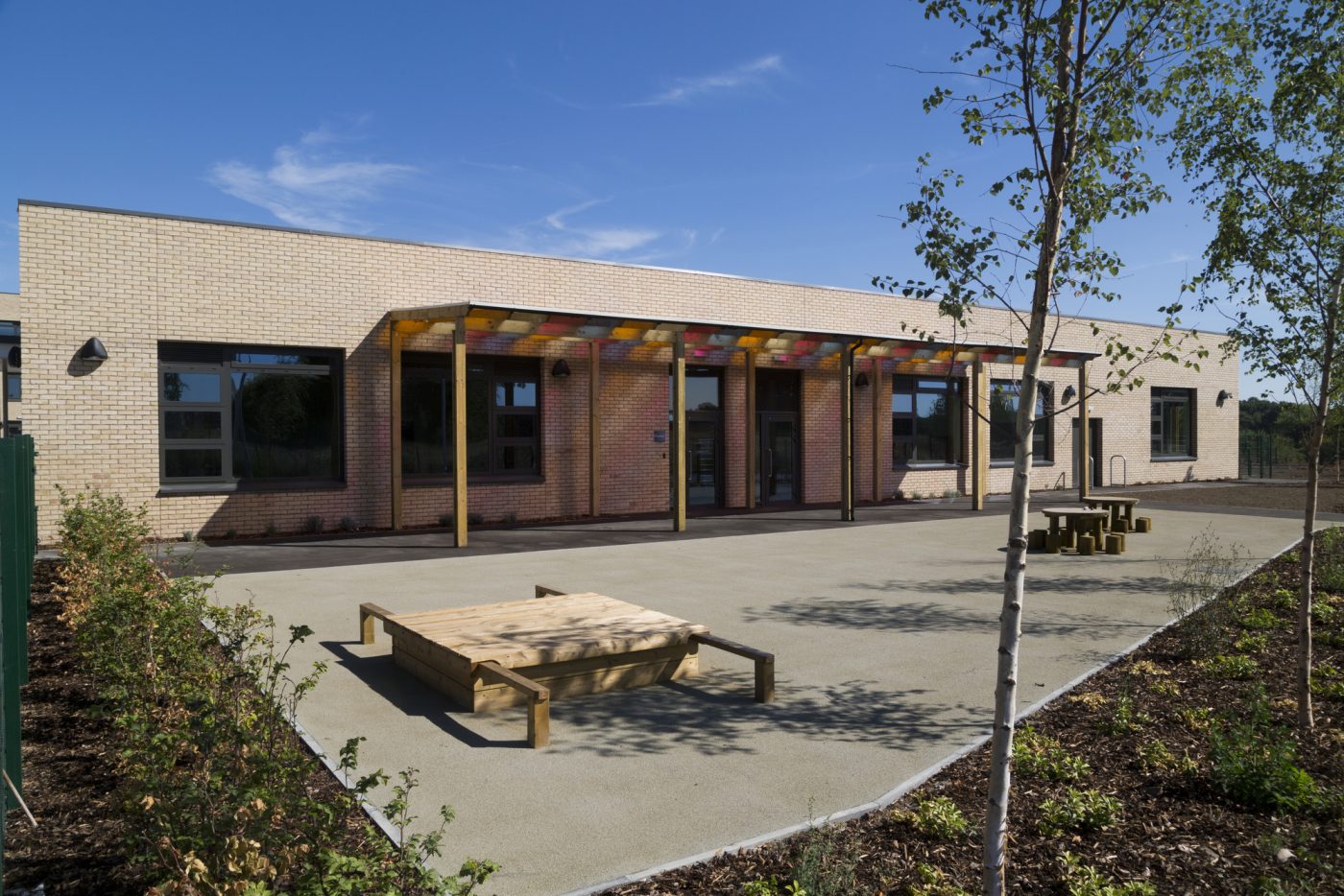 The design places the buildings on the higher part of the site. The L-shaped wing of the primary school extends from one corner at the lower level. The schools are linked to provide efficiencies in the use of catering facilites and a special needs centre.