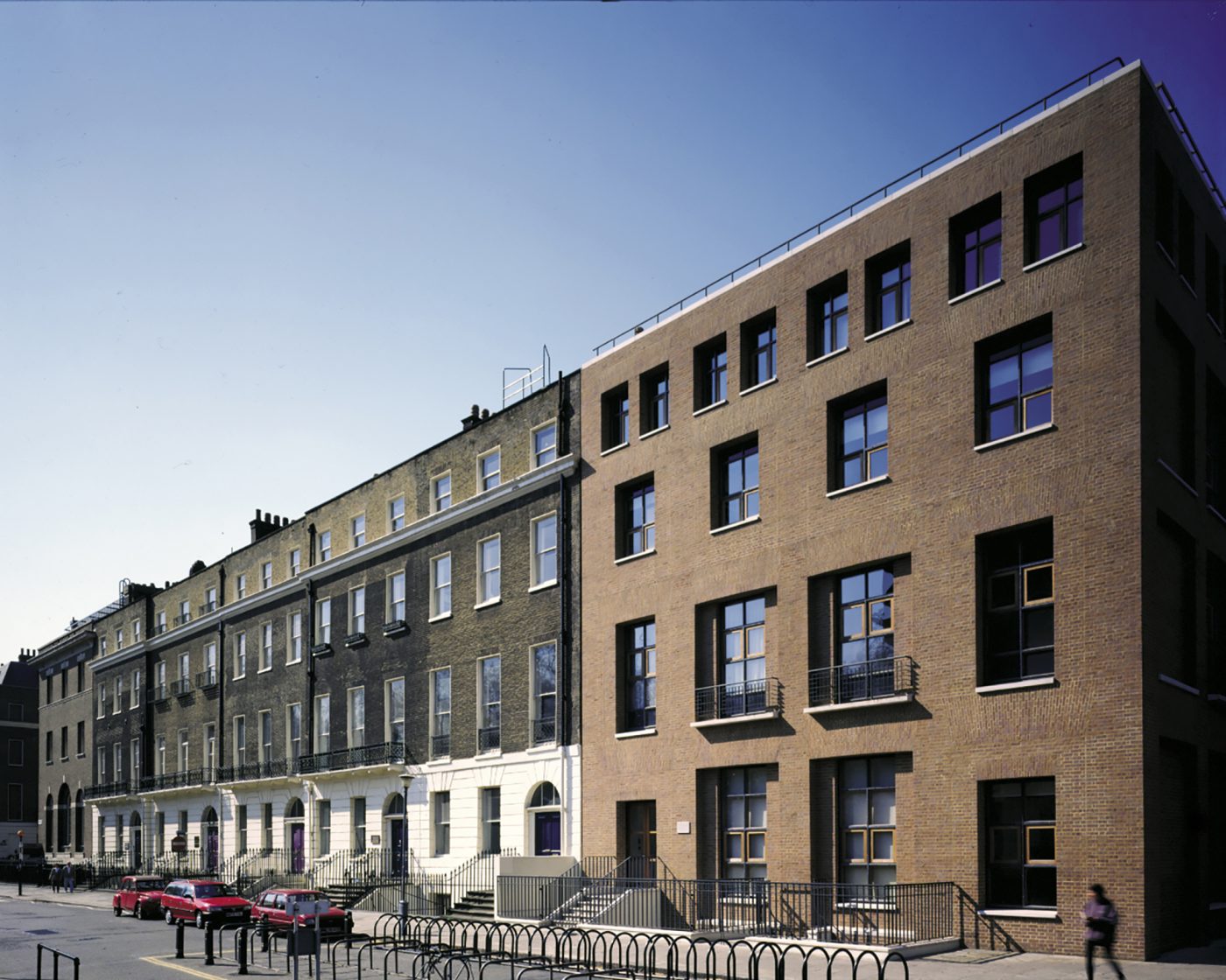 The building occupies a very sensitive site in the north-west corner of Russell Square. Car-parking was removed to create a tree-lined public space which acts as an outdoor focus for the School of Oriental and African Studies and a busy pedestrian thoroughfare.