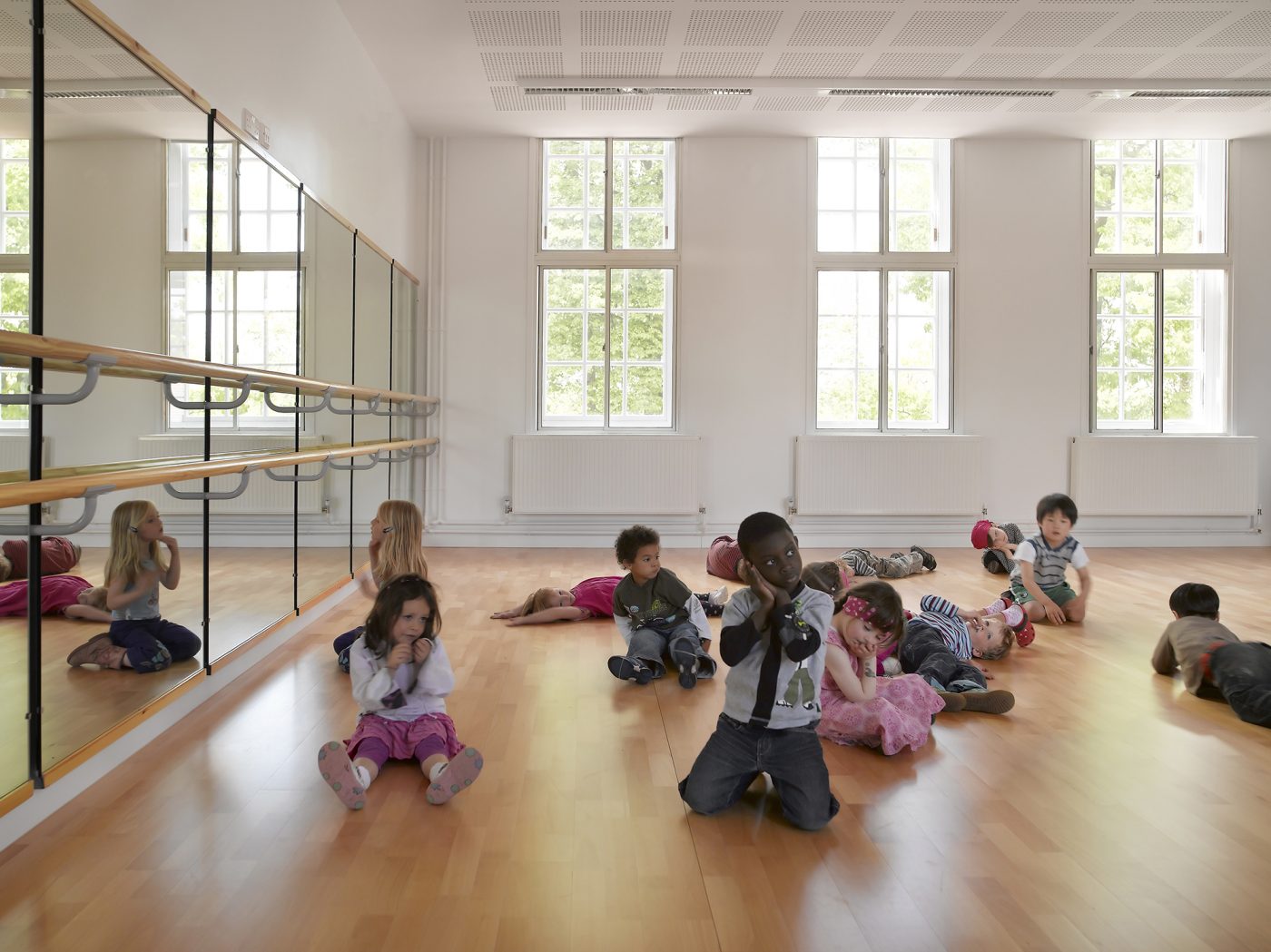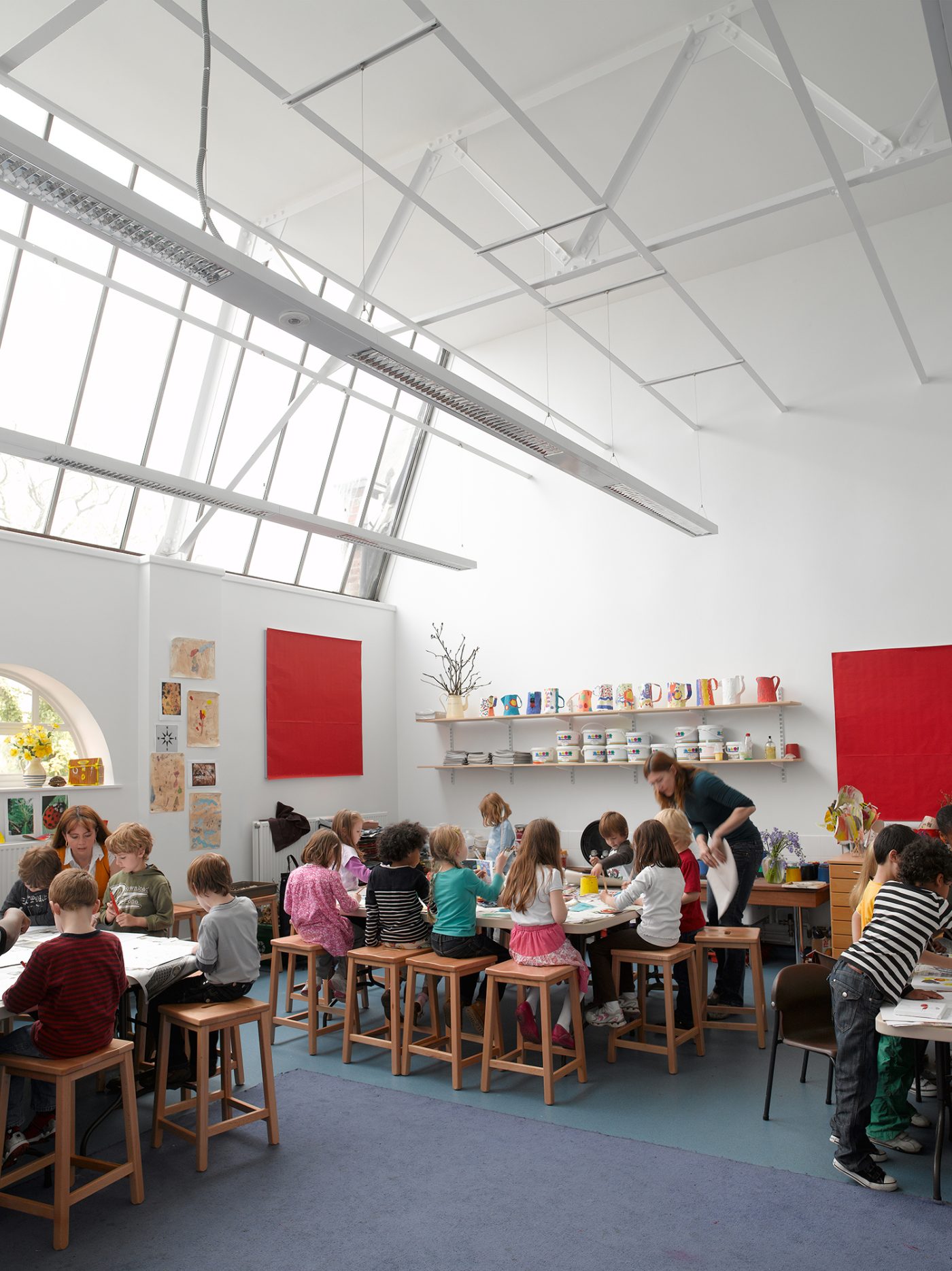 Looking to expand this highly successful primary school from two – to four-forms of entry, the local authority purchased the former Hornsey School of Art building across the road and sought to convert and extend it as an infants’ school.
