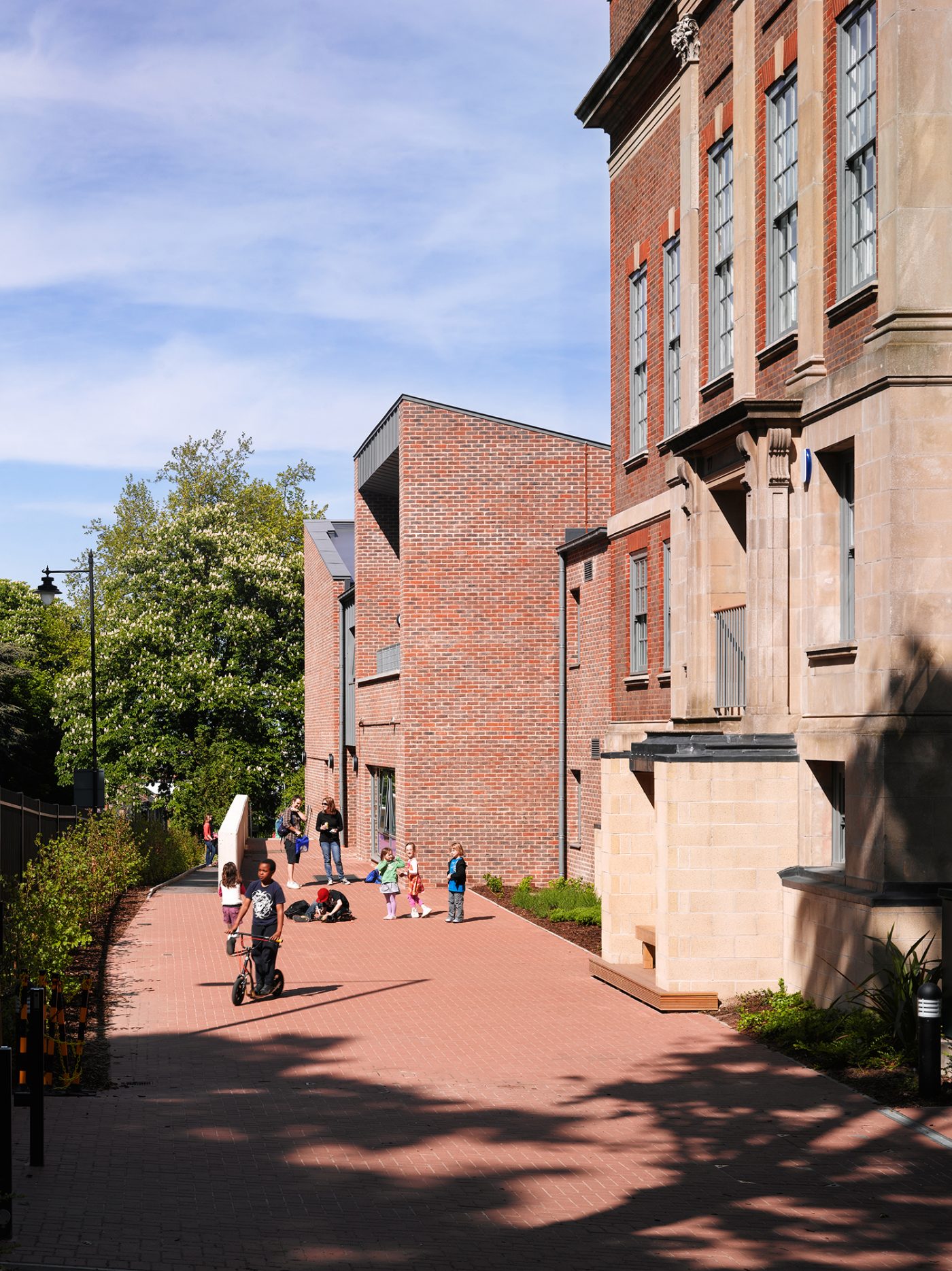 We developed a design and education strategy with the school so that the two sites – infant and junior – could work together, supported by effective ICT provision. The design removed later additions to the original school of art and created two new teaching wings, each containing top-lit clusters of four classrooms forming a year base. Each classroom has access to outside space either directly or with balconies.