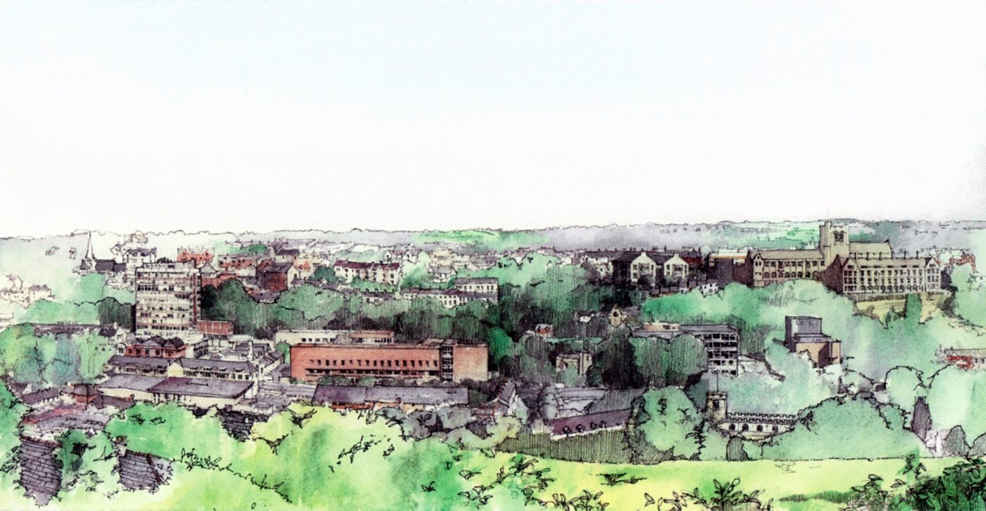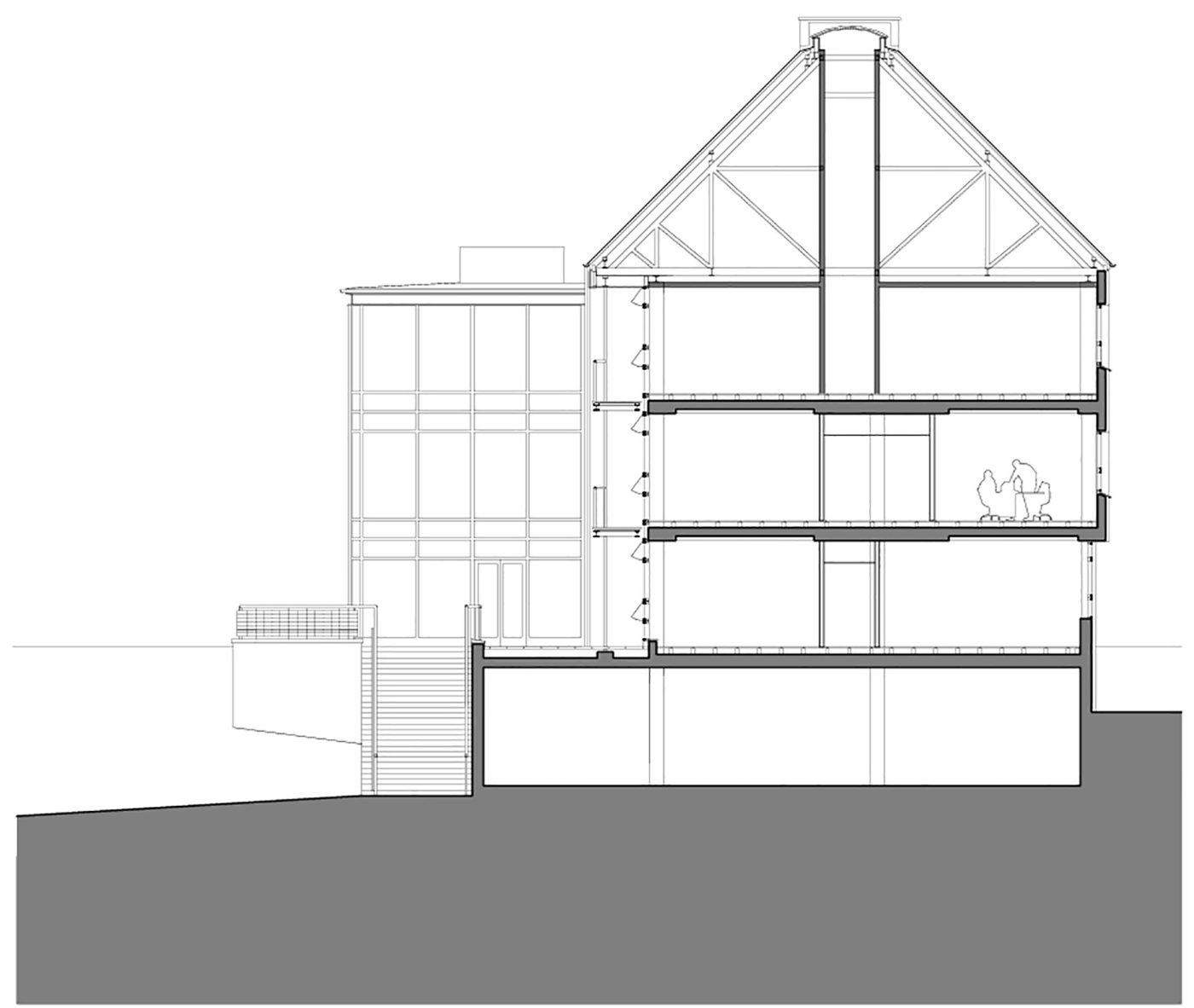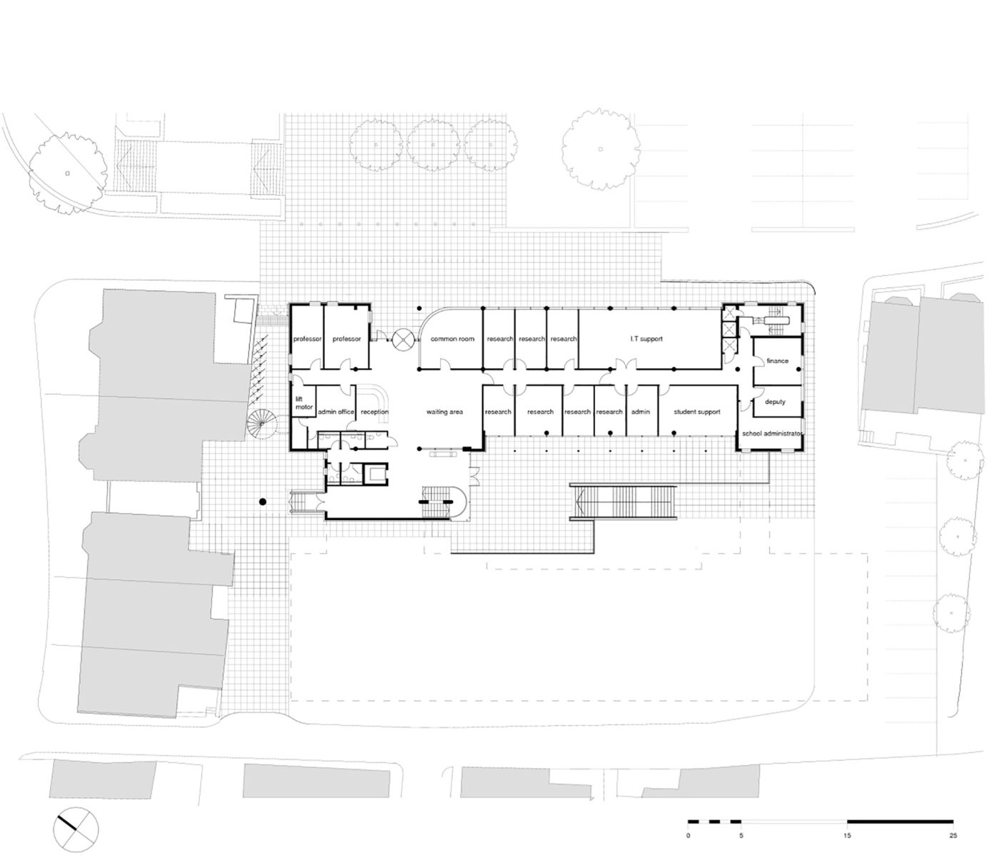 The new building occupies a prominent and steeply sloping site in a conservation area, close to the main university building of 1907, designed by Henry T Hare.