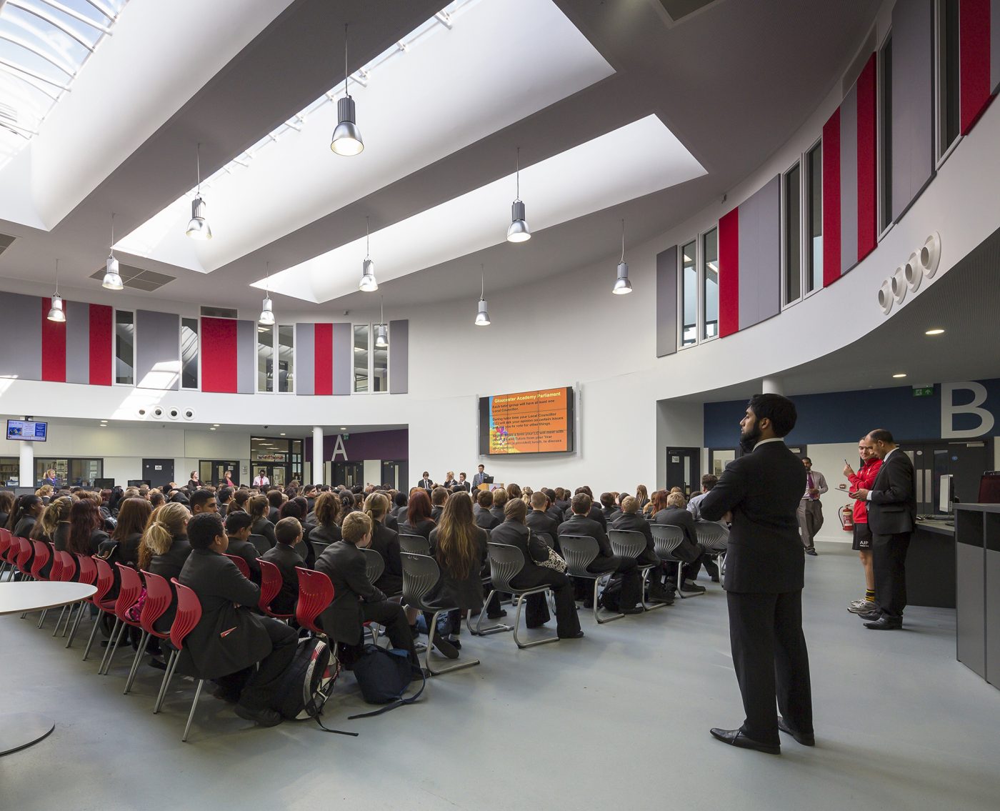 Gloucester Academy caters for 1,250 pupils, including a sixth form of 200. From the outset, the Academy's vision was that the new buildings should be visible, welcoming to the community, inspire and lift the spirits. and should have innovative flexible learning environment, led by student needs.