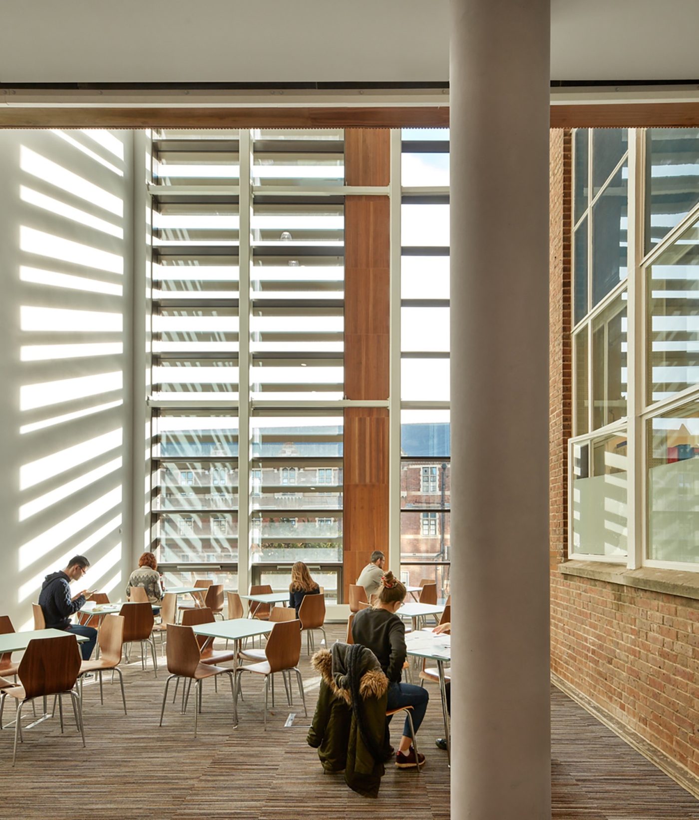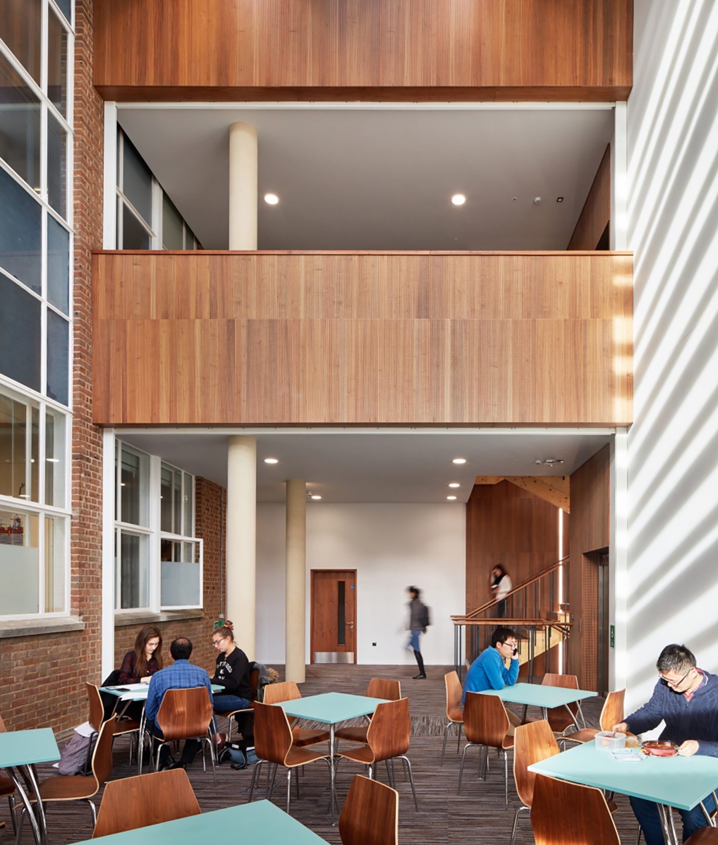 The James Dyson Building provides flexible and highly energy-efficient research, seminar and meeting spaces for post-graduate students at the University of Cambridge’s Department of Engineering.