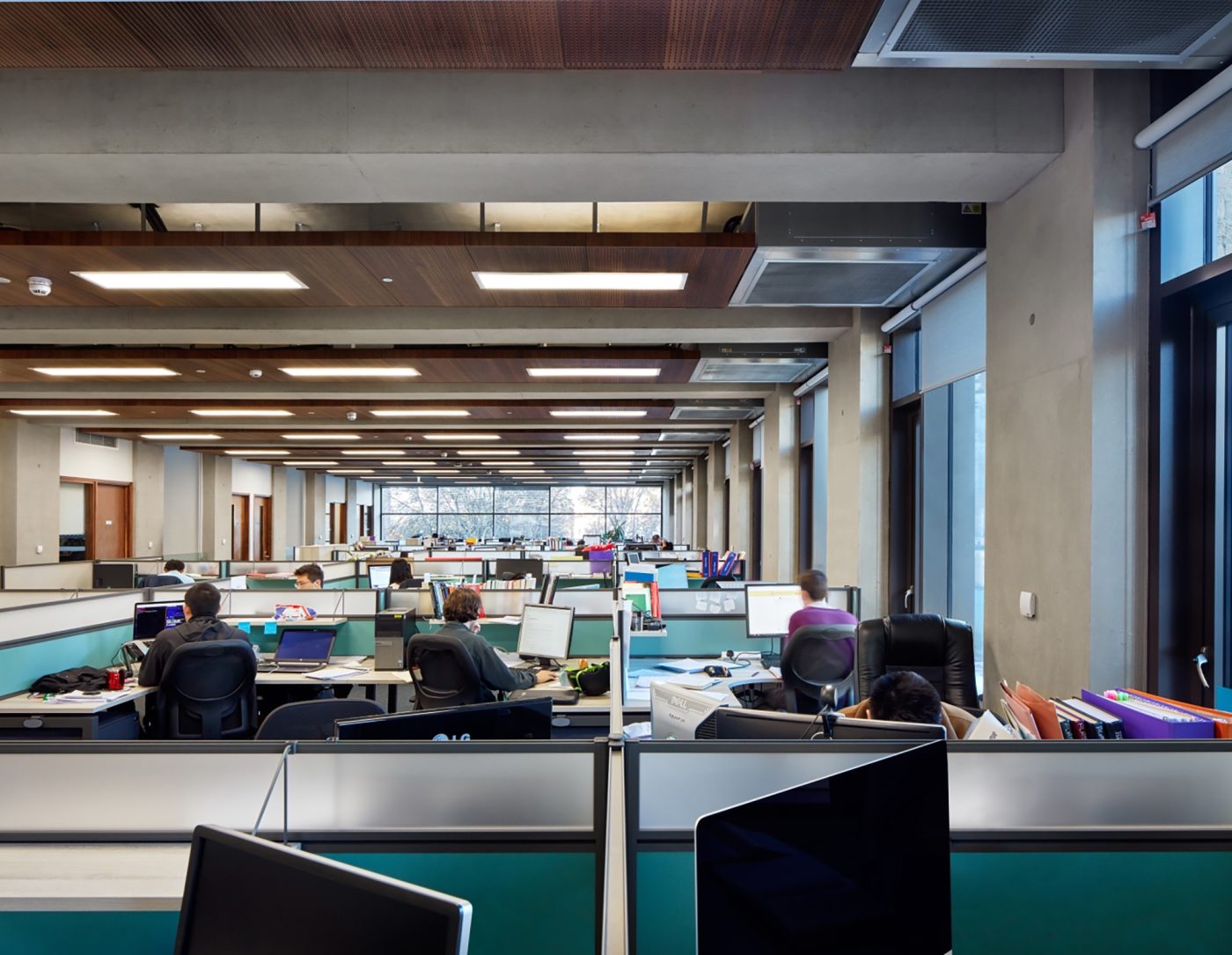 The Department’s priorities were for a low-energy building (targeting 100kWh/m2/annum total) that would showcase the state-of-the-art work of the Department. Much of the concrete frame of the building is exposed internally to assist in maintaining thermal stability and natural ventilation is encouraged using a series of chimneys running through the building.