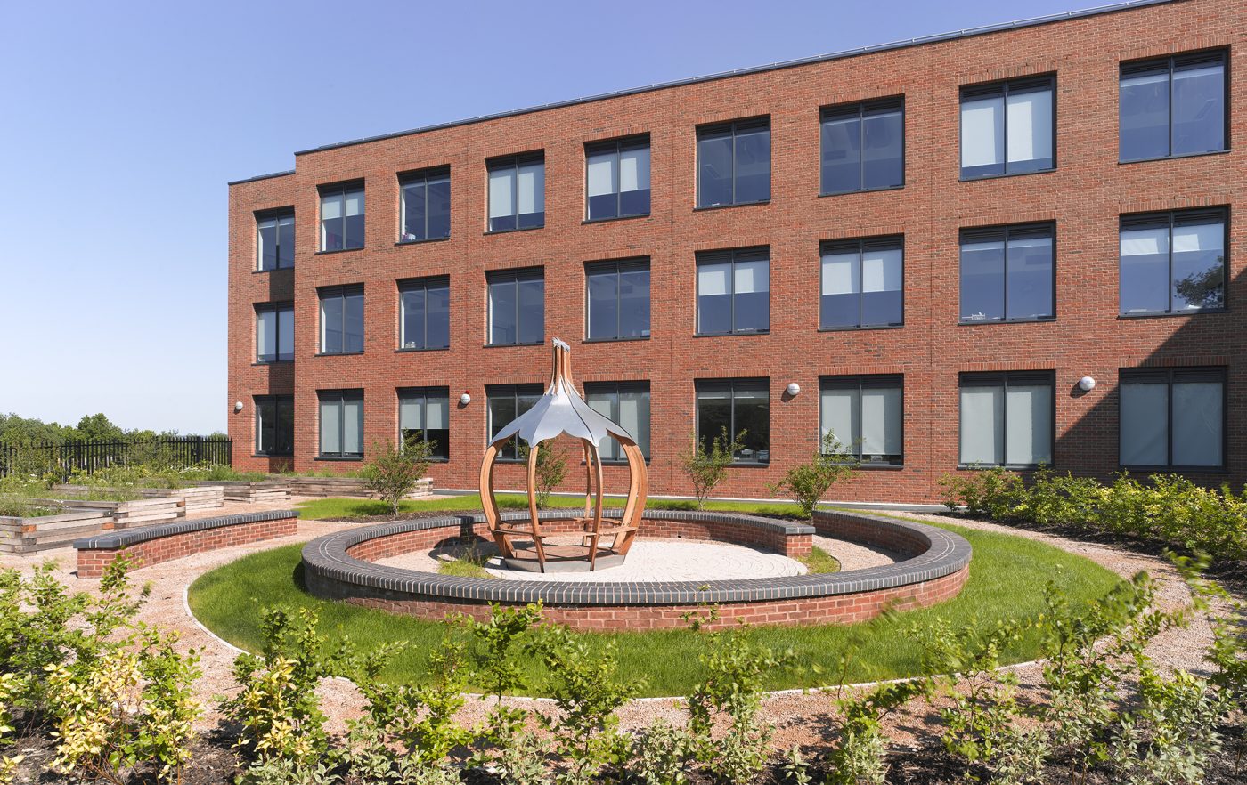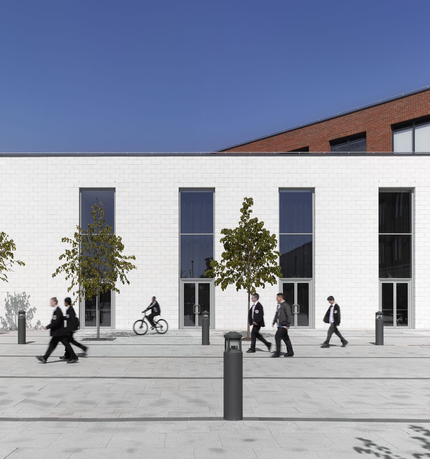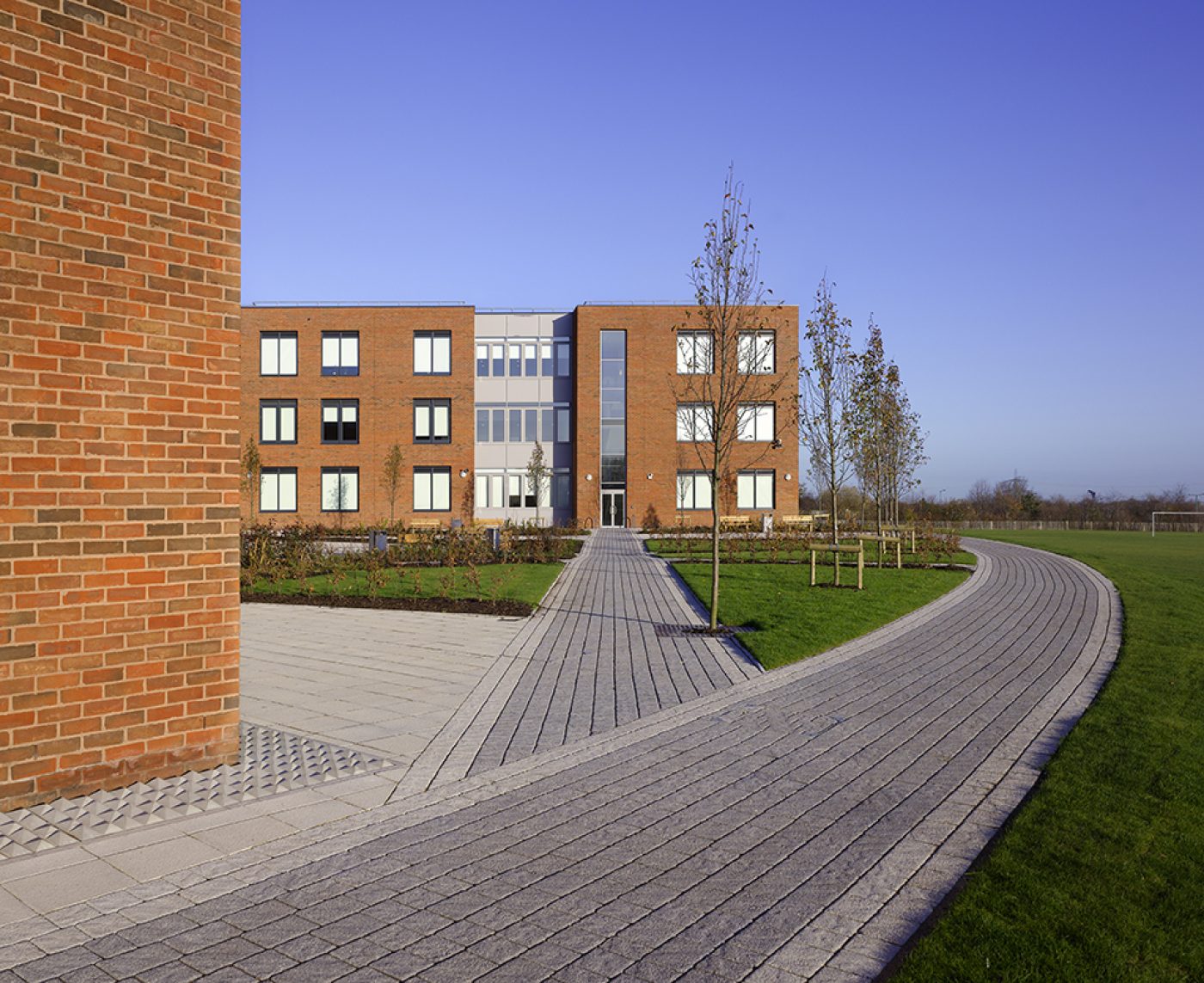 These teaching wings house general classroom facilities and science laboratories. They are connected by a cranked spine housing the more public and specialist facilities.