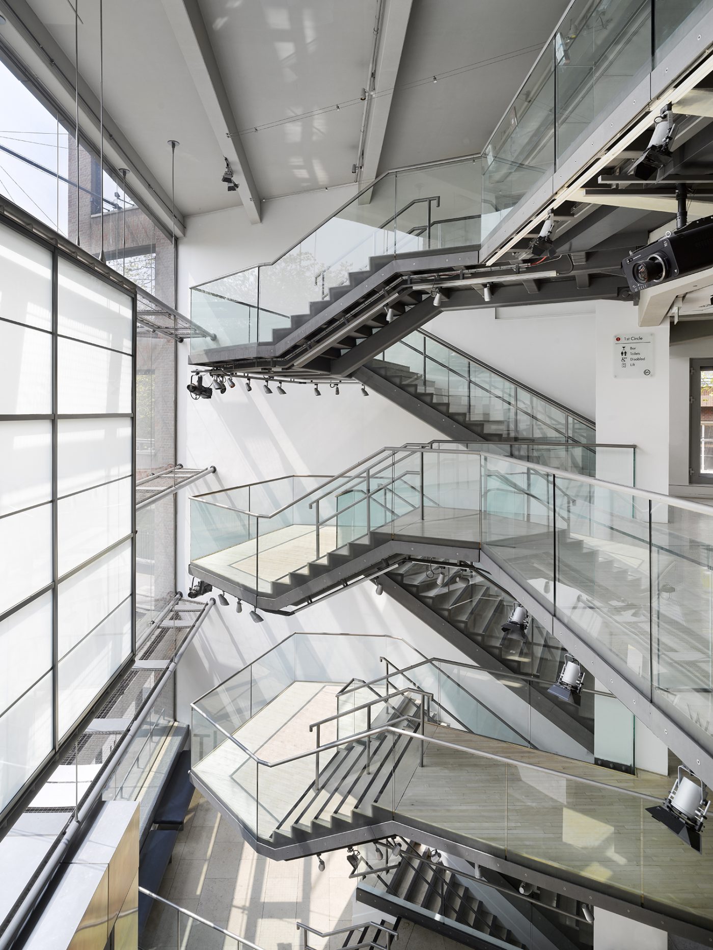 The full-height glass entrance with the back projection screen is a great bit of theatre; when the place is really buzzing the energy of the foyer spills out onto the street.Maxwell Hutchinson, composer, broadcaster and architect in Architecture Today
