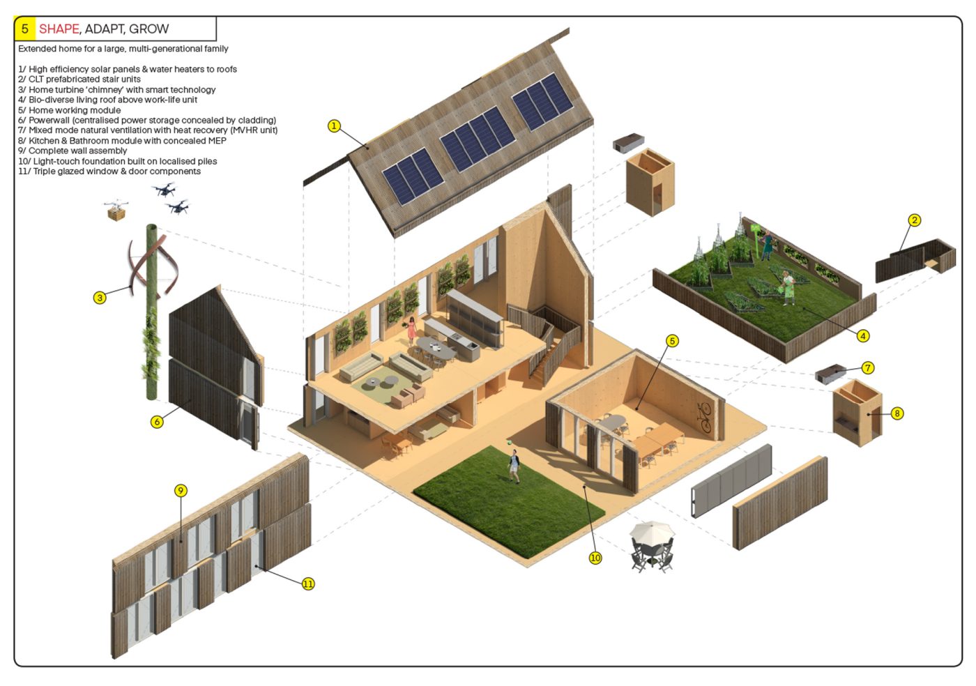 When purchasing your adaptable abode, a carbon off-setting tax is added - based on a calculation of how many trees went into your CLT home, you pay to replant double the number of trees. With each SHAPE home built, a new one is planted.