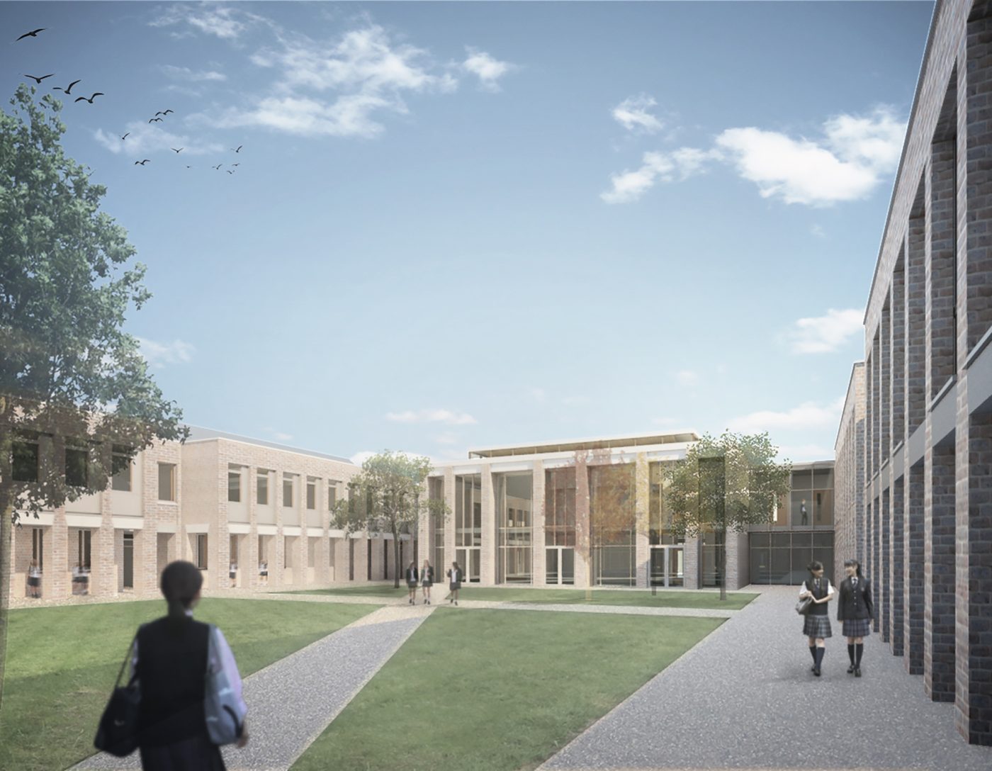 The ‘One Campus’ has involved a re-configuration of the whole campus to become a greener, safer and altogether more attractive environment. The new buildings include a main building for King’s High School, a music building, additional facilities for sports, art and design technology and a sixth-form centre, being shared with Warwick School.