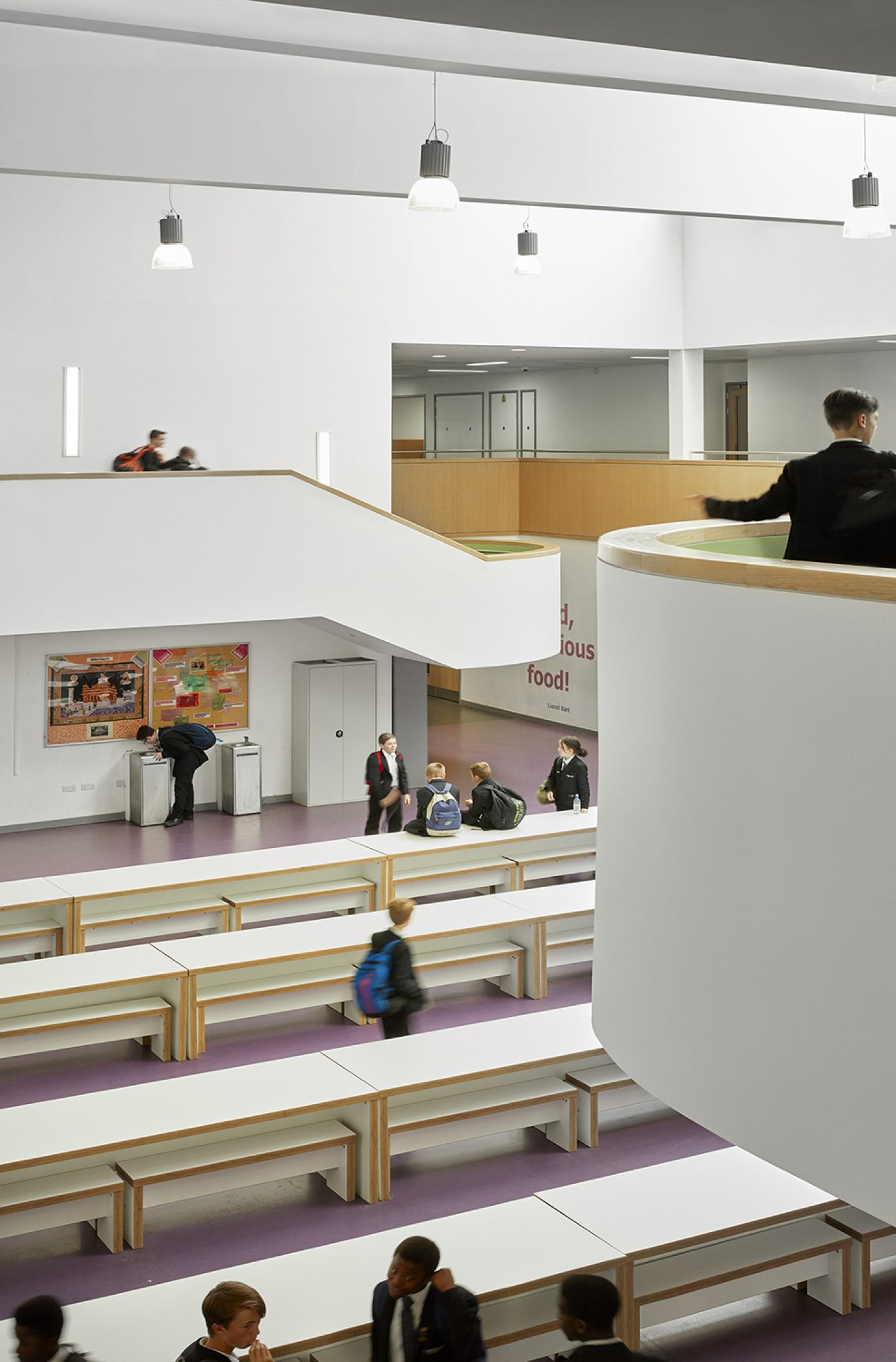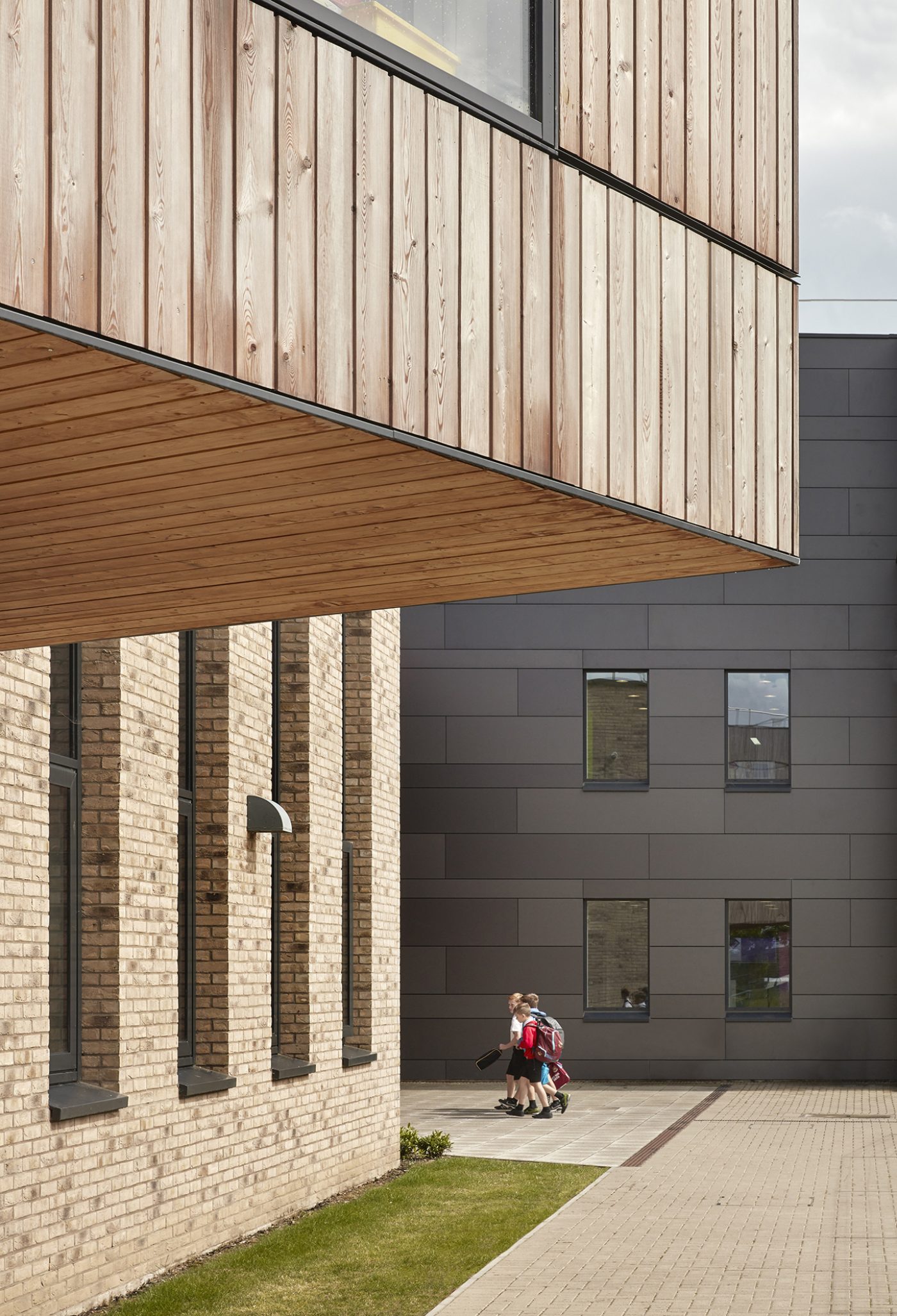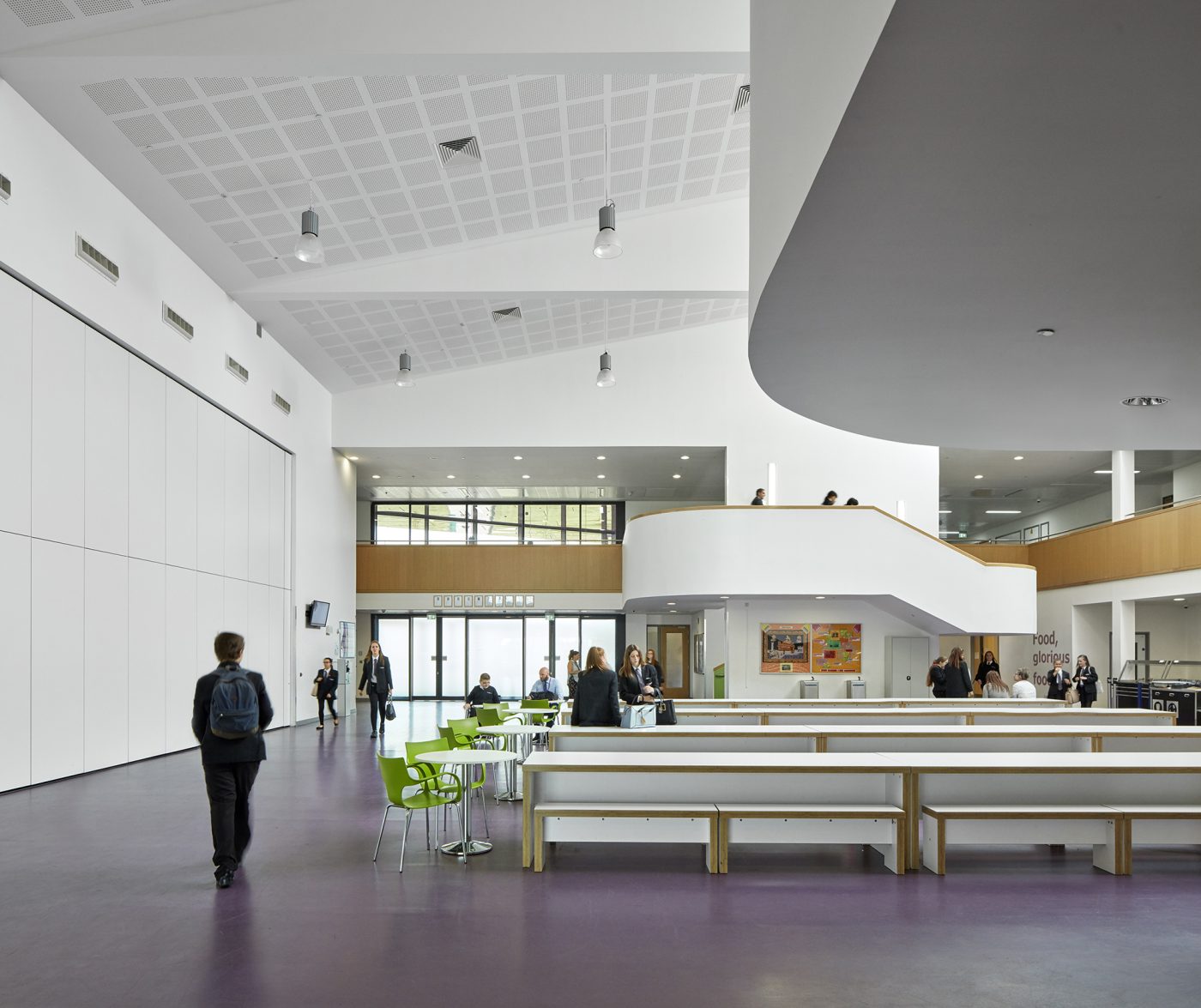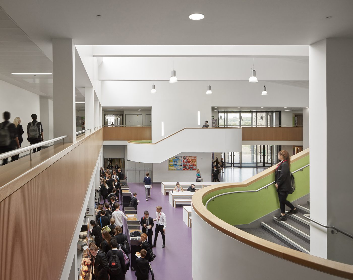 The design creates a striking new facility with a central atrium acting as a dynamic focus to the school. The building form capitalises on the large, park-like site, its walls forming external rooms opening out on to its green fields. The building's form reflects the school's welcoming ethos, reaching out to greet students and visitors arriving from all directions.